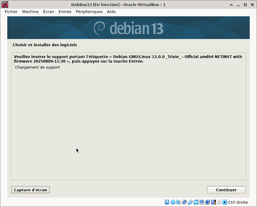 Hello folks :)Just tried setting up a vm with latest trixie netinstall cd, I choose to do the install on an 1TB lvm disk with separate /home for this time and stumbled upon a problem... the graphical installer bugged at 'choose and install softwares' step, asking for a change of support, wanting be feed with